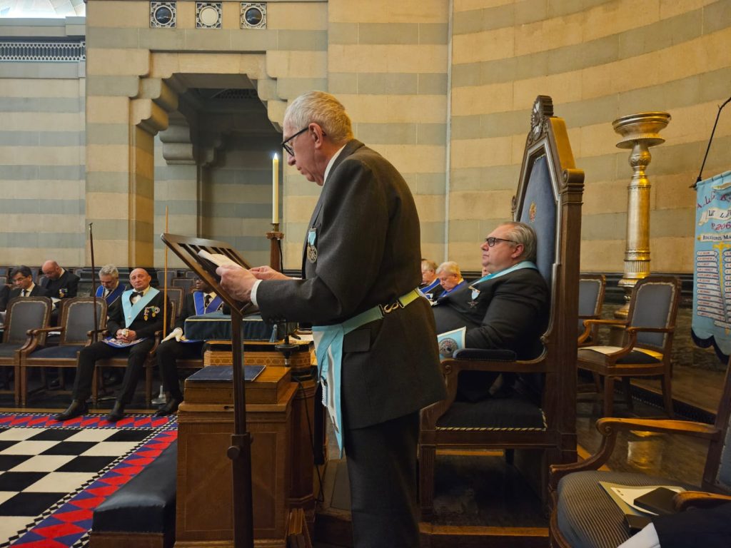 Taking a break from the ceremony, a historical reading by R.W. Brother Francis DELON, Grand Archivist of the GLNF, recalled the crucial role played by La France Lodge in the events of 1913-1914, which led to the recognition of the Grande Loge Nationale Française (GLNF) by the United Grand Lodge of England.